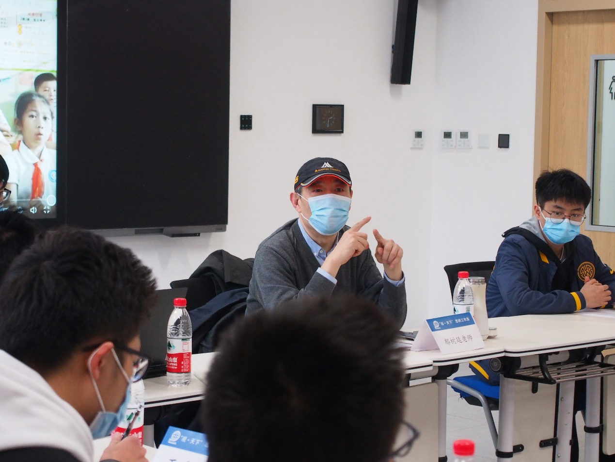 郁树延在听取同学们的发言后,肯定了同学们的充分准备。针对“双减”问题,从国家政策的落实,现有人才培养体系的改进方向,人的全面发展目标,教育的公平性和公益性这四个角度阐述了自己的看法。此外,还向同学们介绍了今后环境的大趋势,对同学们的未来给予了期望。