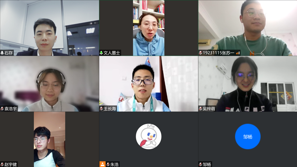 同学们一一分享了自己的志愿工作及学习生活情况。张苏一同学代表志愿者们介绍了近期的工作和生活情况。随后,志愿者们积极发言。袁浩宇同学提到因为近期气温原因,比赛需要提早进行,早上五点就要起床准备工作,同时,自己的毕业设计开题一切顺利。邹杨同学负责车辆引导,为奥委会和媒体指路,自身的课业在繁忙的工作中也已经妥善安排好。王长海同学介绍了自己的情况并沟通了自己的选课情况。赵宇健同学负责帮助运动员们上下车,有时早上四点半就需要出发。任杰瑞同学作为环内工作人员,在技术部门和外国人士接触较多,尽管承担着较大的疫情风险,但也收获了一个历练外语的好机会,同时学业压力不大,生活上也吃得饱睡得好。吴梓萌同学表达了对学院老师抽出时间关心志愿者的感激之情,在志愿工作中她负责物资发放,参与了红色观影、非遗手工制作等活动,在奥组委和学院的关怀下,和其他志愿者建立了深厚友谊,她表示,请学院放心,志愿者们会在最后几天努力坚守岗位。学院团委书记石存听完志愿者发言后表示,希望志愿者们要好好珍惜最后几天的冬奥志愿时间,站好最后一班岗。对于同学们提出在学业、生活方面的困难与疑惑,学院全力做好保障,帮大家协调解决。