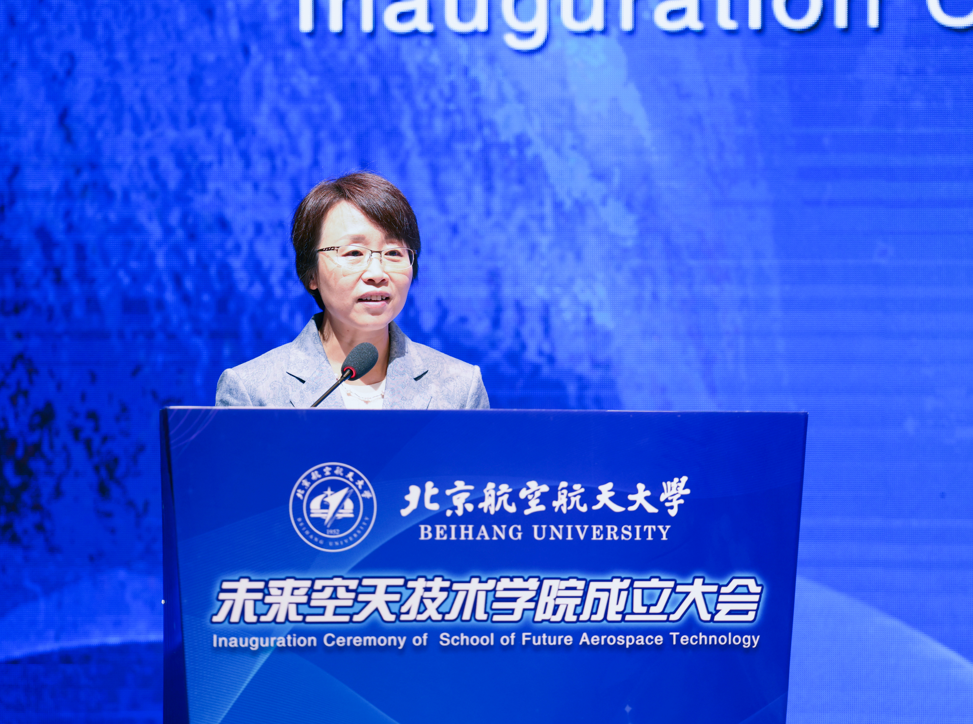 吴岩在讲话中表示,2017年以来,教育部加快新工科建设,取得了积极成效,未来技术学院是新工科总体布局的重要组成部分。他指出,建设未来技术学院是落实习近平总书记重要指示的战略举措,是应对国际竞争的“先手棋”,是推动高等教育高质量发展的重要探索。他表示,希望北航成为未来空天技术创新人才培养的先锋力量,聚焦未来空天技术,建好未来空天技术学院,勇塑前瞻性思维、勇趟技术发展“深水区”、勇闯技术进步“无人区”,培养具有想象力、洞察力、执行力、领导力的未来空天技术创新领军人才,为国家再立新功。