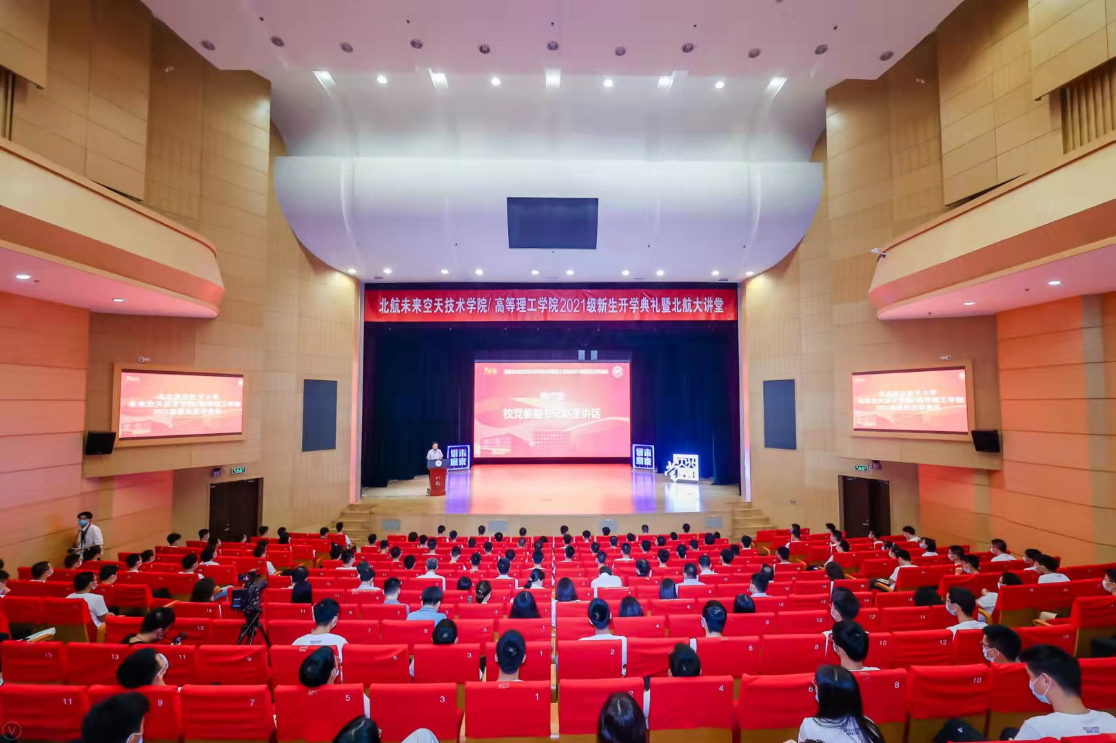 9月12日上午,北航未来空天技术学院/高等理工学院2021级新生开学典礼暨北航大讲堂在晨兴音乐厅举行。校长徐惠彬院士与新学院首届182名本博新生合影留念,校党委副书记赵罡代表学校对北航“未来一期”的新生们提出了要求和希望。未来空天技术学院院长、中国探月工程总设计师、中国工程院院士吴伟仁寄语学院全体新生,并为广大师生做了题为《中国的航天——过去、现在、未来》的北航大讲堂报告。首批校内特聘导师宫声凯、苏东林、向锦武三位院士,校长助理,相关部处和学院的领导、老师、嘉宾等200余人参加开学典礼。