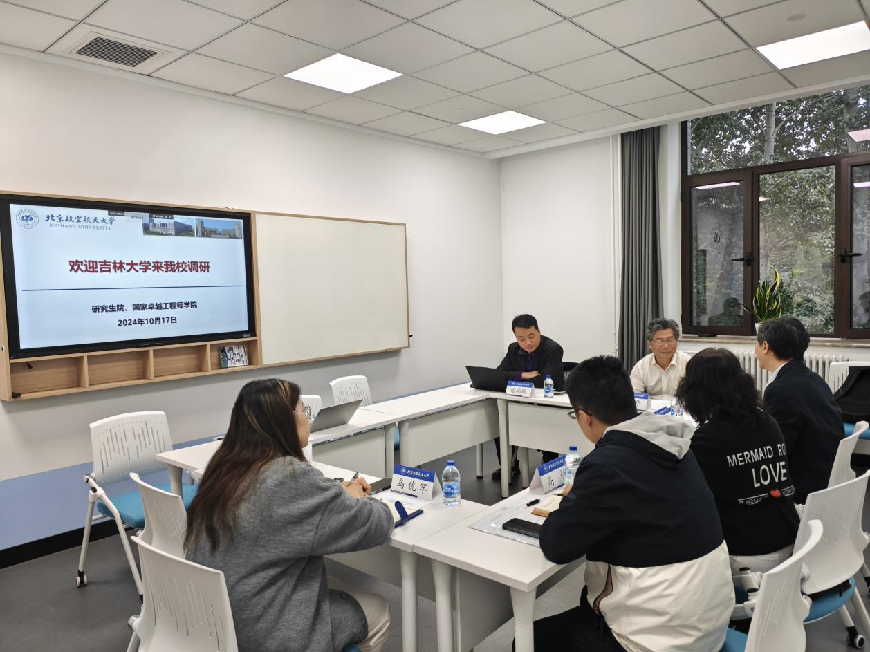 10月17日,吉林大学研究生院副院长、培养办公室主任、卓越工程师学院副院长张宇,研究生院研究生培养办公室副主任宋淑敏,专业学位培养科科长高杉赴北航开展调研。国家卓越工程师学院常务副院长曹庆华、工程师技术中心副主任姬瑞鹏、研究生院卓越工程师产教联合培养研究中心马骏等接待调研。